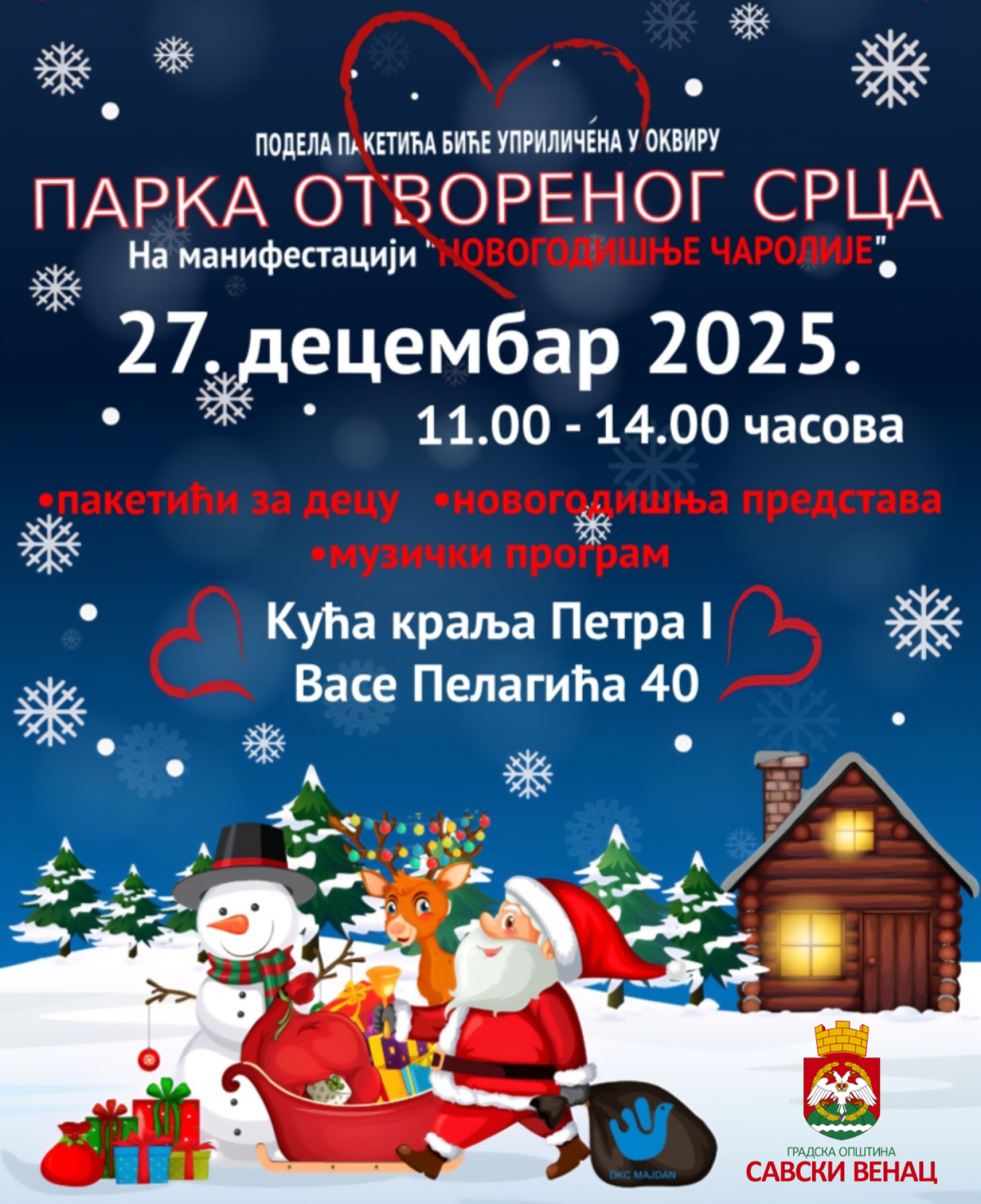 Манифестација „Новогодишење чаролије“ и подела пакетића одржаће се 27. децембра у Кући краља Петра I, Улица Васе Пелагића 40.